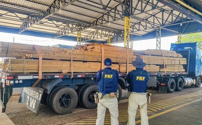 PRF apreende carga de madeira com irregularidades na BR-174 em Mato Grosso