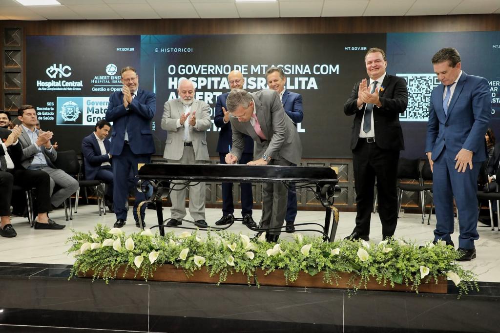 O contrato foi assinado no dia 22 de abril, com a presença do governador Mauro Mendes, representantes do Einstein e autoridades dos três poderes. A solenidade ocorreu no Palácio Paiaguás, e marcou o início de uma nova era para a saúde pública do estado.